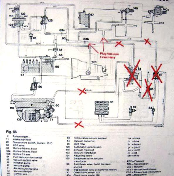 I just want to be sure I'm pluggin the appropriate lines, and leavin g the right ones connected etc. Thanks. Image below 1985 300SD Attachment 5476 Image below 1981-4 300SD EGR Vac Diagram Attachment 5477 |