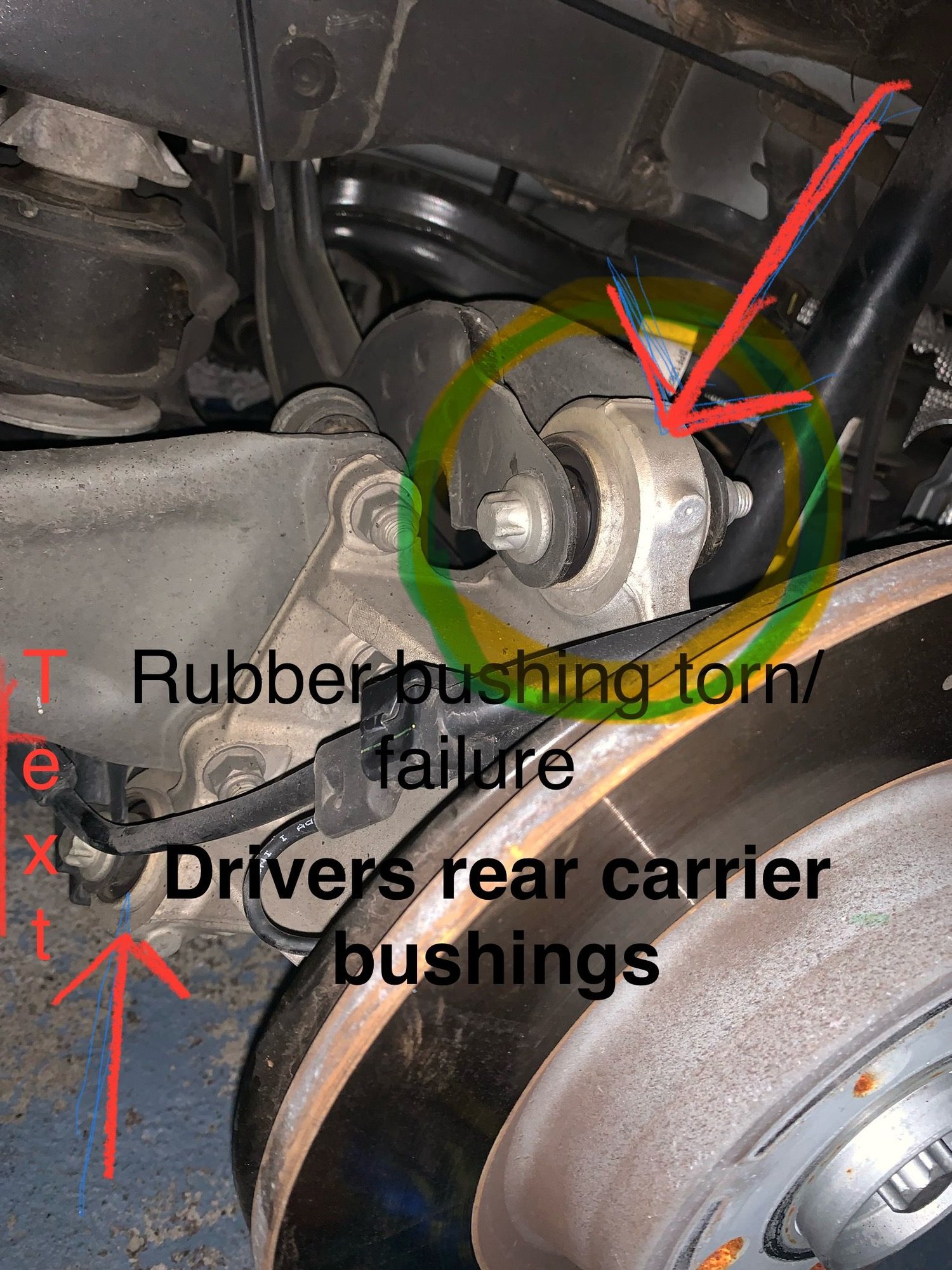 This is my neighbors car and last week while driving home from work, both rear wheels worn to the steel belts! Obviously it’s an alignment issue, but when I inspected the carrier bushings some looked to have cracks in the rubber and tears in the bushing causing the tire failure! Took the car to our local Mercedes dealer and they’re trying to tell us that the bushings are fine and the car just needs new tires and an alignment. You can clearly see in the pictures the bushings are torn and cracked. Mercedes will not warranty anything and said “ the rear bushings are fine, the bushings are not torn and what we’re seeing is a coating on the OEM bushings” I’ve been working on cars for over 45 years and these bushings are compromised and torn!!