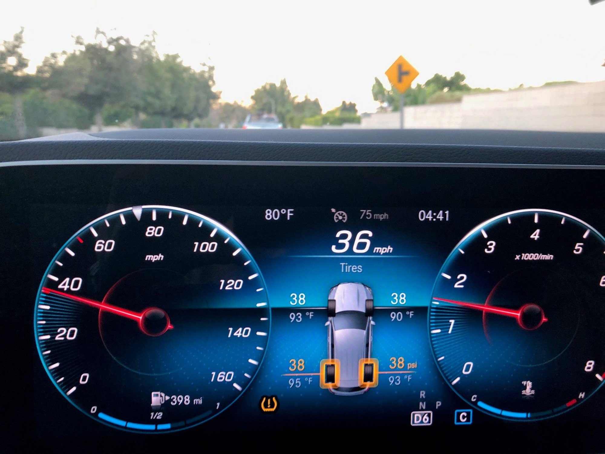 I setthe pressures to values at 34/34 which is 2 PSI more than indicated fuel door label (32F / 32R) and it triggered a low pressure warning notice on display panel while driving long distance and the tire were at operating temperature and indicating 38/38 on display panel (hot tire pressure).
