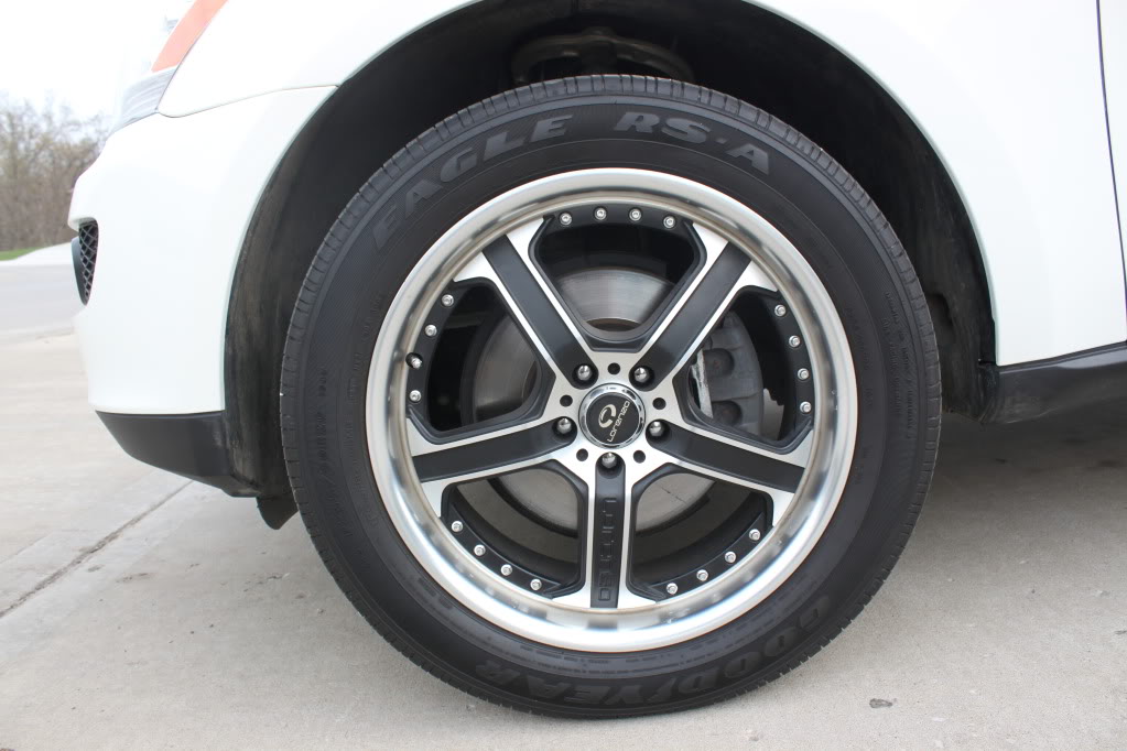 Up for sale we have a set of 20" Lorenzo Wheels. They are overall in good condition. No scratches or road rash, although they do have some bite marks. They go for around $300 a piece! The tires are brand new 255/50/20 Goodyear Eagle RS*A 's . They have only around 4k Miles , therefore are pretty much brand new. (80% Thread still remains.) They are around $700 brand new on Tire Rack. Overall this is a $1900 Wheel + Tire Package. The bolt pattern is 5x 112. We took them off of our Mercedes- Benz ML350. The Price is $1300 OBO. Make an offer. Will have good pictures up very soon. They are located in Kansas City, MO. Willing to ship at buyers expense. :y