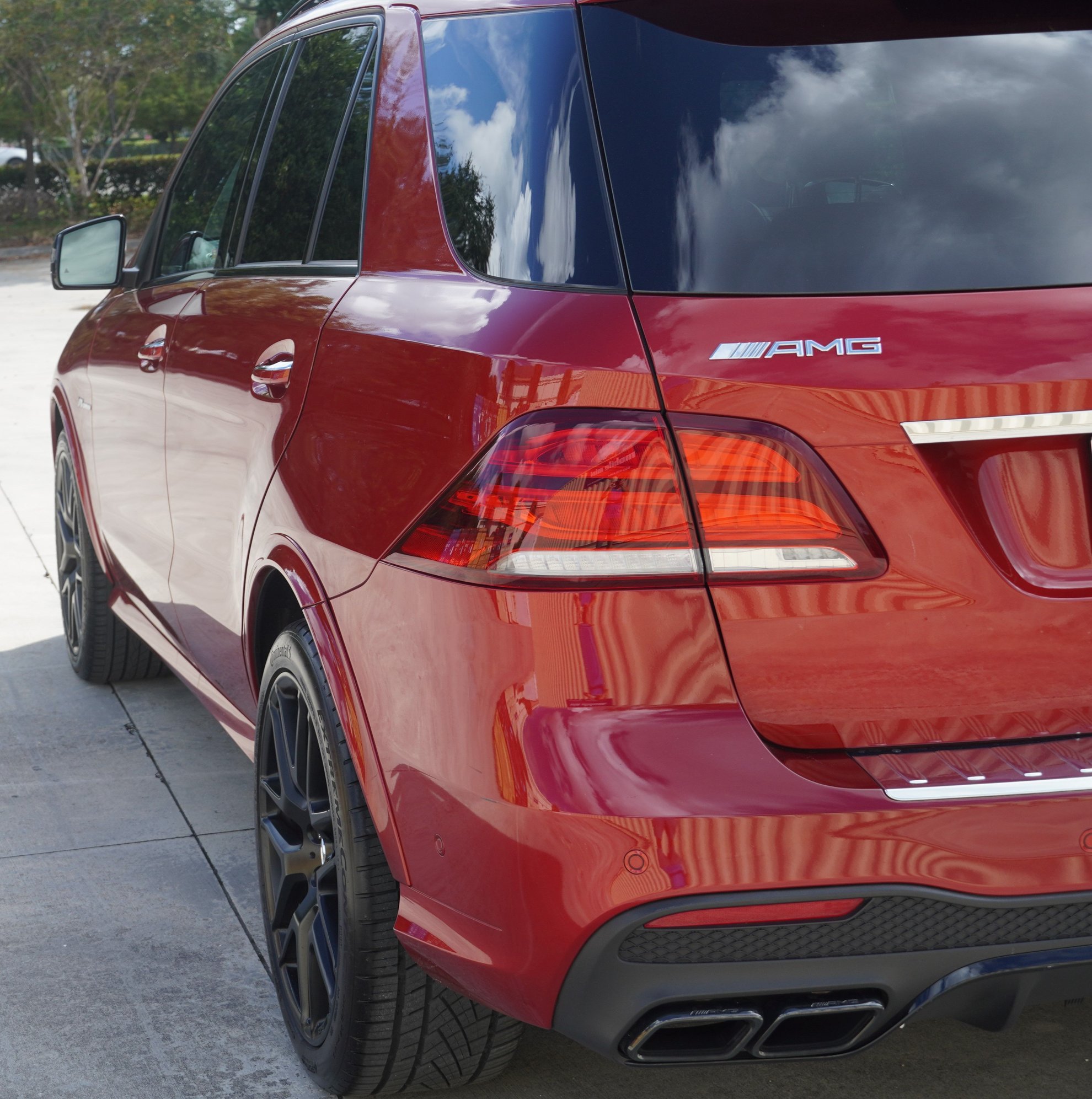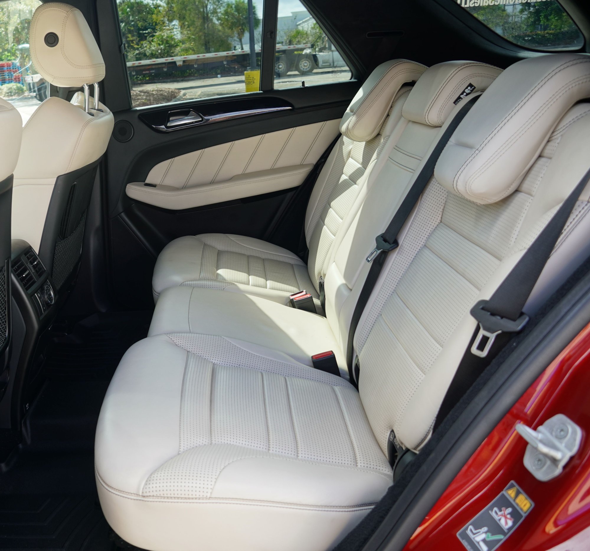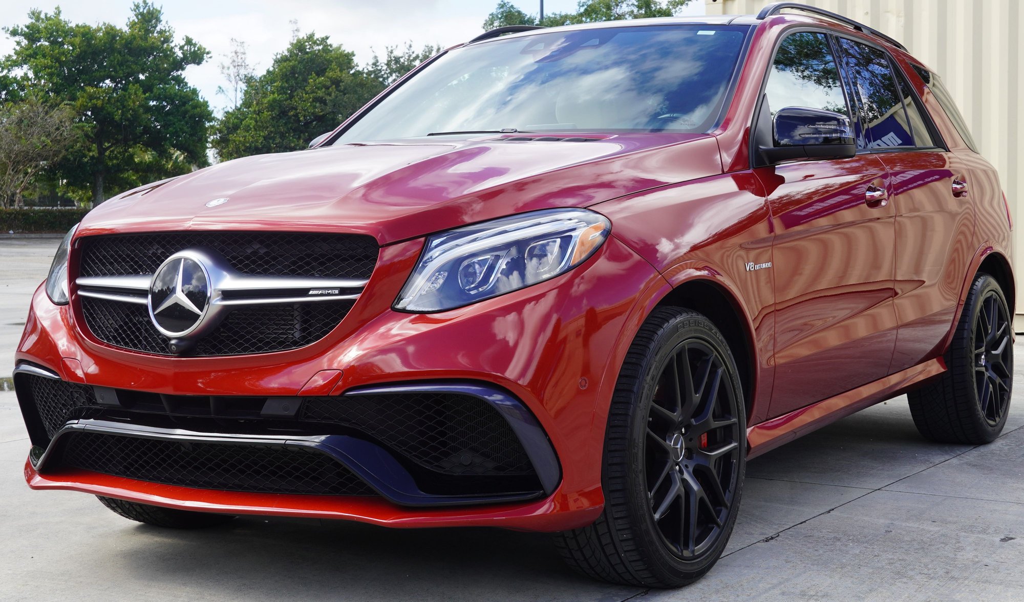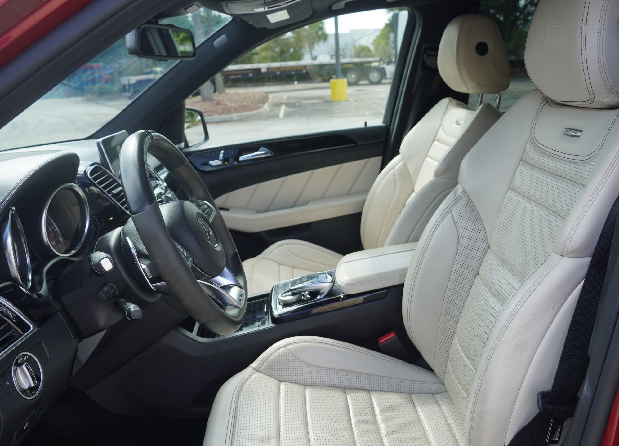 Designo Cardinal Red Metallic color with 535 Porcelain Nappa Leather which is basically a light light off white. The color combo is Rare and Beautiful. Definitely turns heads and helps to hold value. Look around you won't find 1 other truck like this one guaranteed. Don't just buy an AMG. Buy one with a color combination and add ons, no one else will have!