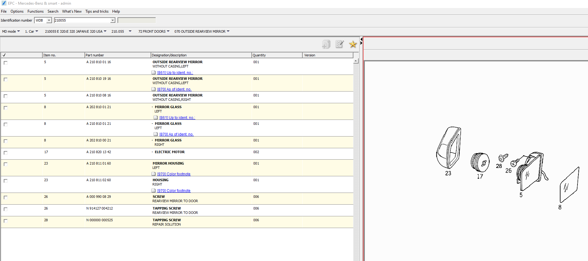 EPC screenshot below for the 1996 E320.